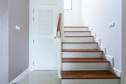 Łączenie materiałów na stopniach schodów drewnianych